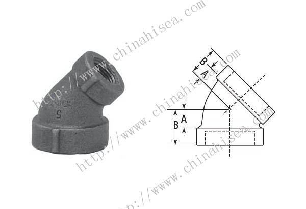 Cast iron class 125 threaded elbows are indicated here with six types: Cast iron 22.5° elbow, Cast iron 45° straight elbow, Cast iron 45° reducing elbow, Cast iron 90° elbow, Cast iron 90° flanged&threaded elbow, Cast iron 90° reducing elbow.