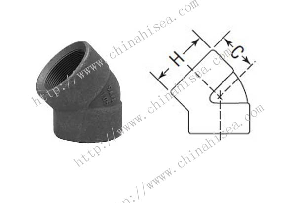 | Forged steel 45° elbow | NPS 1/8-4; DN 6-100 | ASME/ANSI, DIN, JIS, GOST, etc. | Class 2000 | Threaded | Petrochemical, construction, water supply&drainage, light&heavy industry, frozen processing, sanitary, plumbing, fire protection, electric power, aerospace, shipbuilding |