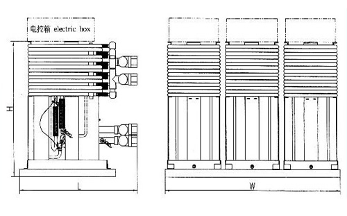 YTLS Navy water chiller module design make the installation convinient and flexible,developing the max efficiency,improving the reliability and accessible for maintanence,Single water chiller module may be combined together to provide a large system,which is easy to modify the type of for special service,Refrigenerant circuit of single water chiller module is totally enclosed and filled with R22 at factory and need no charge on site.Chilled or heated water piping and cooling sea water piping can be collected individually,improving the connection speed and is convinient for customer installation.