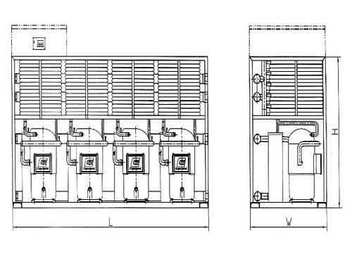 Each water chiller module includes hermetic scroll compressor,4-way reserve valve,double way expansion valve,High efficient coaxial condenser,stainless steel plate type heater exchanger,high&low pressure switch,water flow controller and water pan etc,Each assembly is assembled together compactly and make volume small.